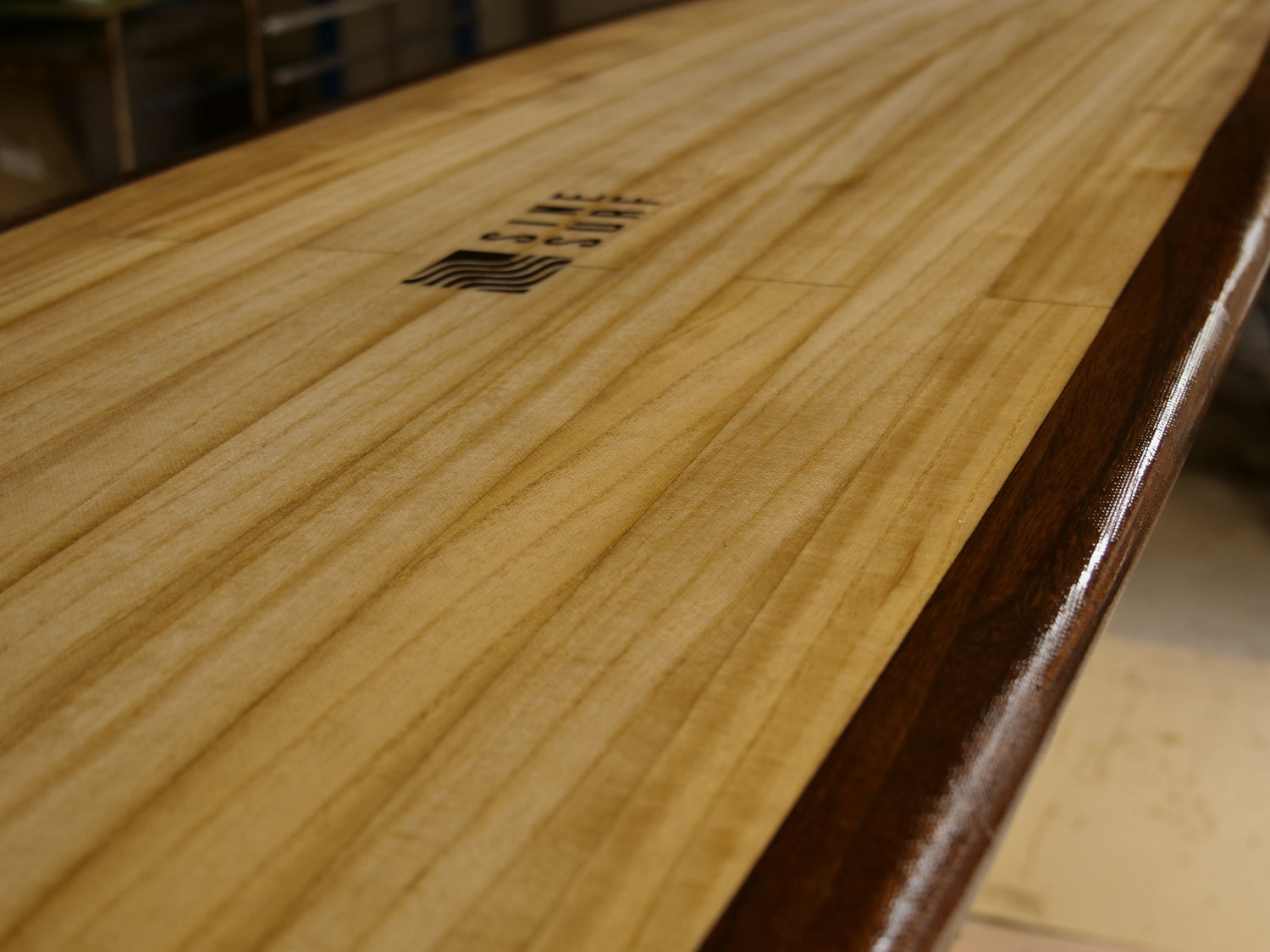Because of the strength of the timber, only 1 layer of 4oz fiberglass on the deck and bottom is required for all board sizes.
