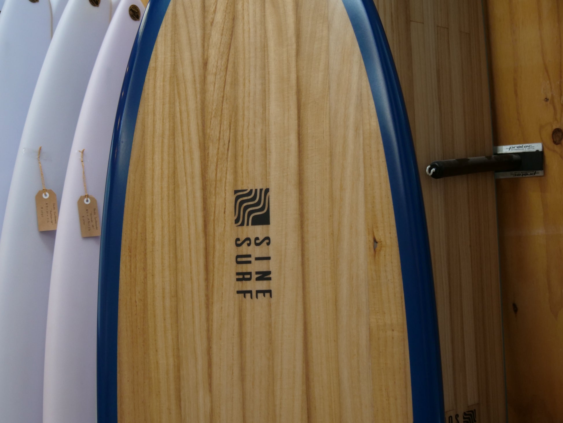 | Construction | Sine Surf proprietary hollow-wooden construction. Sustainable plantation paulownia wood core with reduced polyester fiberglass resin shell. |