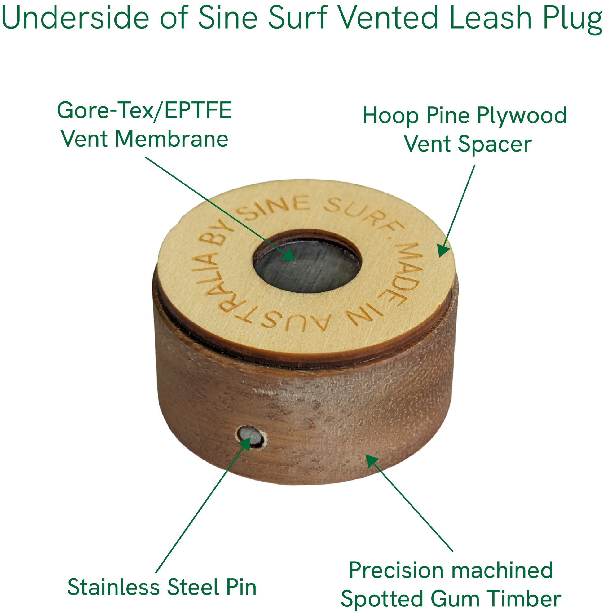 They are precision machined from Spotted Gum, a strong, dense and hard timber found on the east coast of Australia. Our own surfboards use these plugs and have undergone a large amount of testing with no failures occurring.